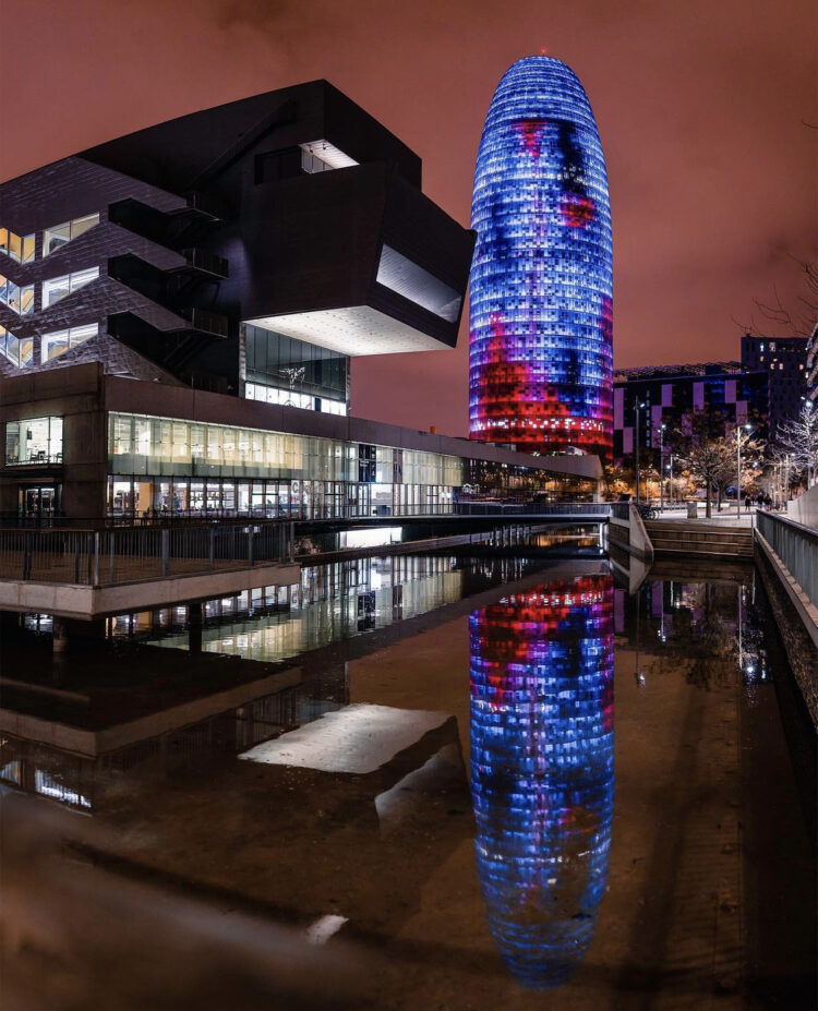 This bullet‑shaped tower clad in aluminium and glass stands out in Barcelona’s skyline. Its smooth, curved form and vibrant façade make it one of Europe’s more visually daring skyscrapers.